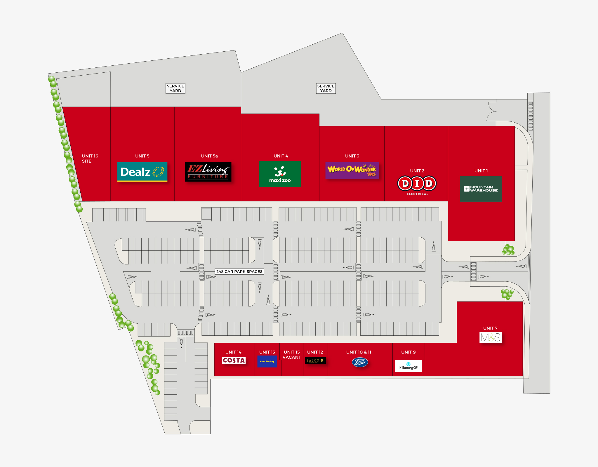 Deerpark Retail Park is located less than five minutes from Killarney town centre, just off the Park Road, and is adjacent to Tesco Superstore and Aldi